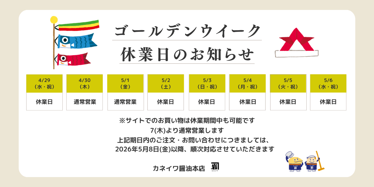 「カネイワ醤油本店」は、高野山系から湧き出した良質の水と温暖な気候に恵まれたこの地で1912年の創業以来、112年間醤油醸造業を営わせていただいております。