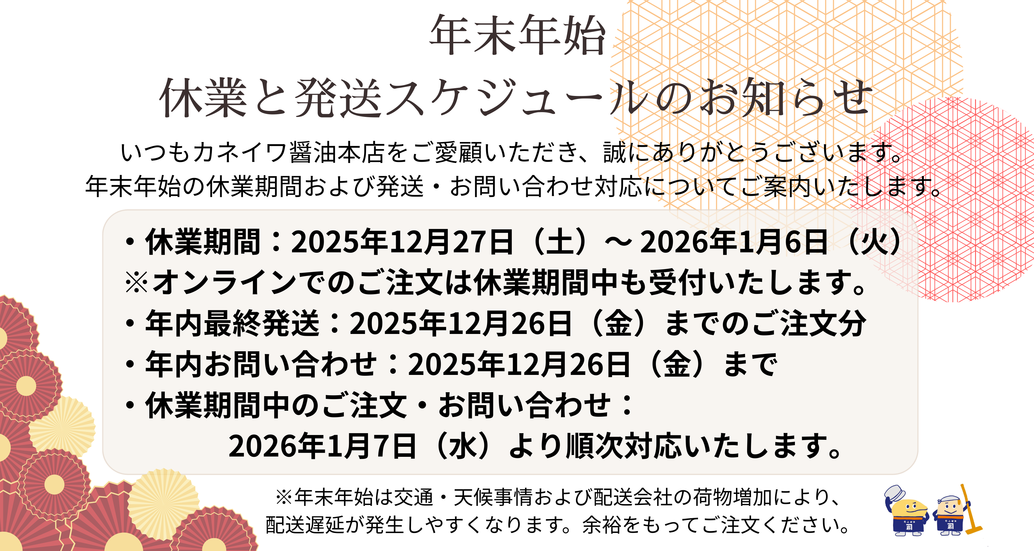 「カネイワ醤油本店」は、高野山系から湧き出した良質の水と温暖な気候に恵まれたこの地で1912年の創業以来、112年間醤油醸造業を営わせていただいております。