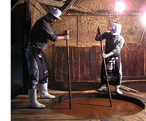 of fermenting soybeans miso in Yuasa, Wakayama and, with its stronger flavor,